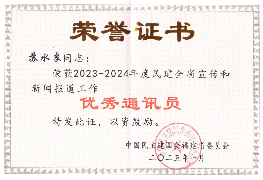 蘇水良榮獲2023-2024年度民建全省宣傳和新聞報(bào)道工作優(yōu)秀通訊員