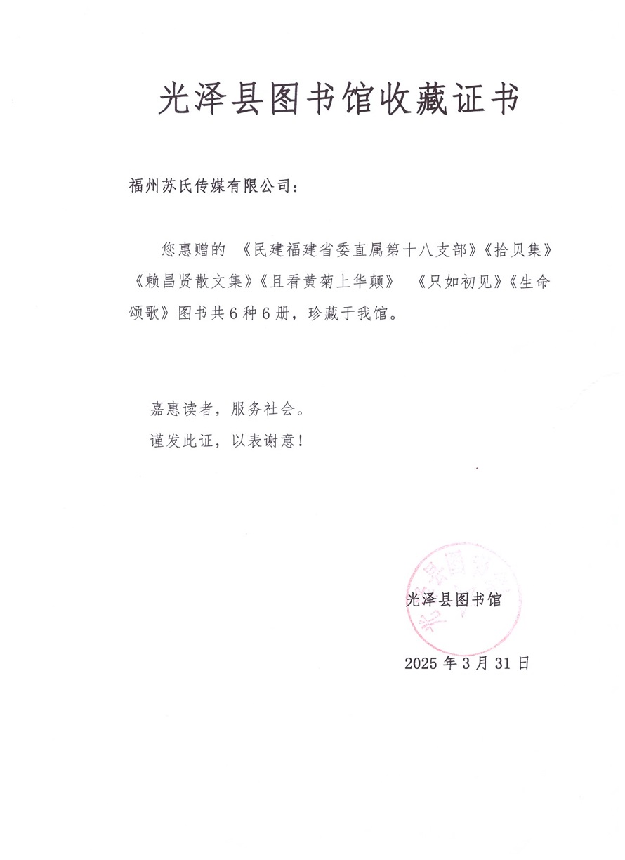 光澤縣圖書館收藏《民建福建省委直屬第十八支部》會刊等