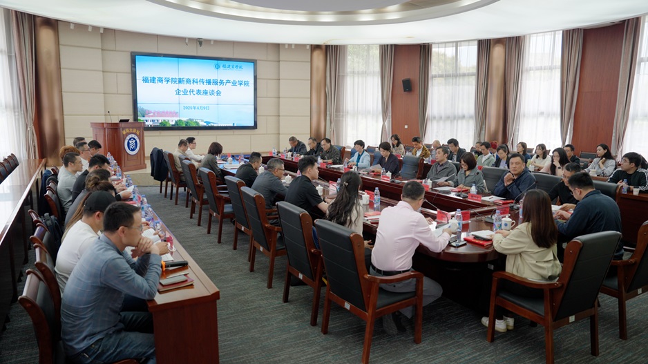 2025年4月9日,福建商學(xué)院召開新商科傳播服務(wù)產(chǎn)業(yè)學(xué)院企業(yè)代表座談會,福建商學(xué)院校長程靈出席會議并講話,副校長蕭罡、林文藝,國內(nèi)27家企事業(yè)代表參加座談。福州蘇氏傳媒有限公司董事長蘇水良應(yīng)邀出席,介紹《財富海西》的發(fā)展情況,共同探討新商科傳播服務(wù)產(chǎn)業(yè)學(xué)院的發(fā)展與未來。