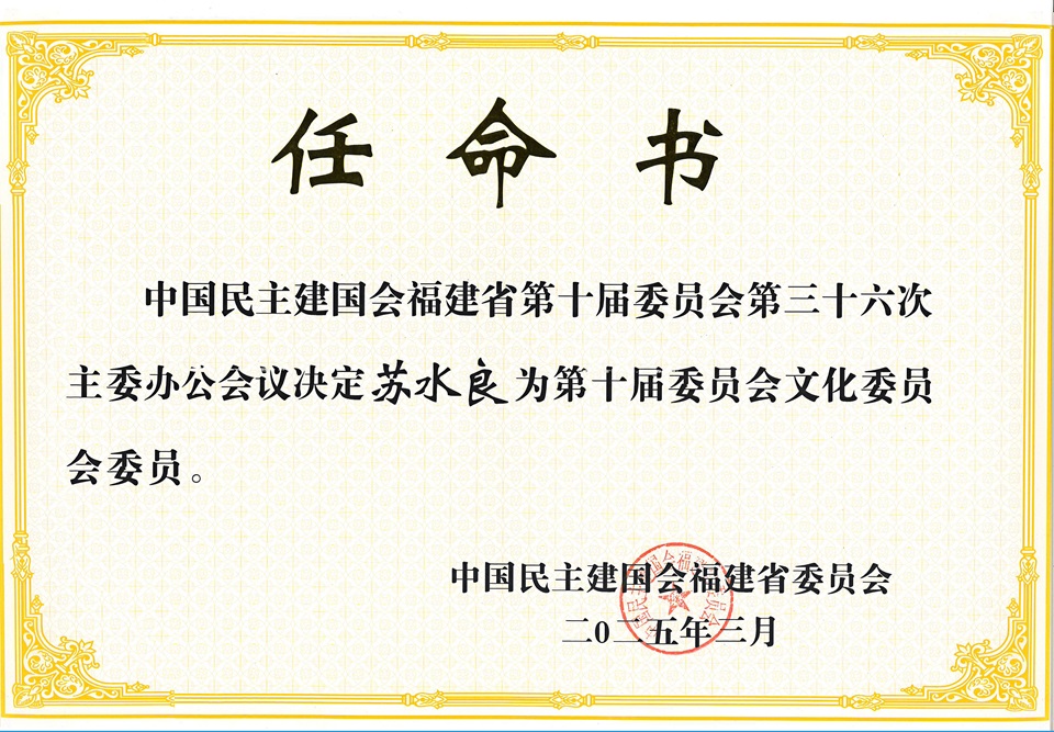 蘇水良任命為民建福建省第十屆委員會文化委員會委員