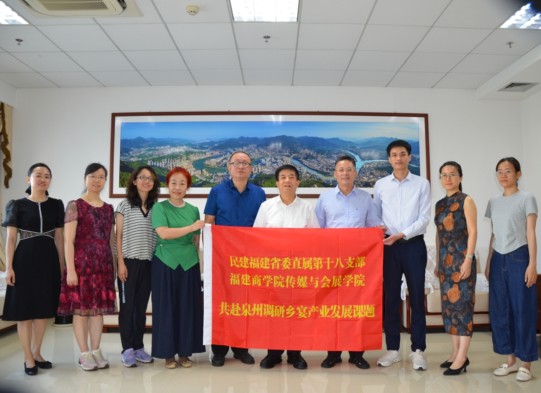 2025年6月30日,民建福建省委直屬第十八支部和福建商學(xué)院傳媒與會展學(xué)院組成的泉州鄉(xiāng)宴產(chǎn)業(yè)發(fā)展課題聯(lián)合調(diào)研組在安溪縣政協(xié)會議室召開“相府家宴”產(chǎn)業(yè)發(fā)展座談會,安溪縣外燴餐飲行業(yè)協(xié)會會長黃種源,民建福建省直工委會秘書長黃畊晗,民建福建省直工委委員、民建福建省委直屬第十八支部主委蘇水良,組織委員曾黎明,活動委林新拓。福建商學(xué)院傳媒與會展學(xué)院網(wǎng)絡(luò)與新媒體系主任周晨芳、副教授楊斌、副教授魏揚(yáng)赟,傳媒與會展學(xué)院會展系主任金珊合影留念。